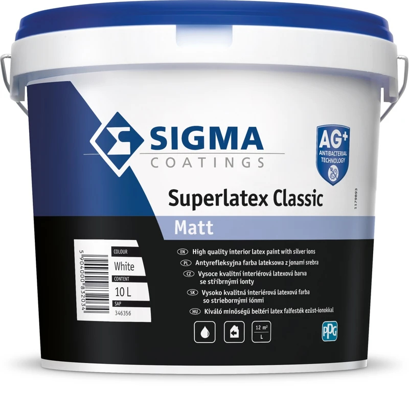Superlatex Classic to nowej generacji wodorozcieńczalna, lateksowa, akrylowo-kompozytowa farba do ścian i sufitów. Przeznaczona do malowania ścian i sufitów wewnątrz pomieszczeń wykonanych z tynków syntetycznych, cementowo-wapiennych, powierzchni betonowych, tynków gipsowych, płyt gipsowo-kartonowych i powierzchni pomalowanych farbami emulsyjnymi. Zastosowanie wysokogatunkowej dyspersji umożliwia prawidłowe „oddychanie ścian”, dzięki czemu farbę można stosować zarówno w pomieszczeniach suchych jak i mokrych (kuchnie, łazienki, pralnie itp.) bez bezpośredniego kontaktu z wodą. Polecana jest również do malowania tapet z włókna szklanego w systemie Sigmascan. Szczególnie polecana do malowania w obiektach użyteczności publicznej, w tym służby zdrowia, taki jak szpitale, kliniki, gabinety lekarskie, sale operacyjne, przedszkola, szkoły, oraz pomieszczenia branży hotelarskiej i gastronomicznej. Dodatek jonów srebra (Ag+) zapewnia ochronę powłoki przed bakteriami, glonami i pleśnią.